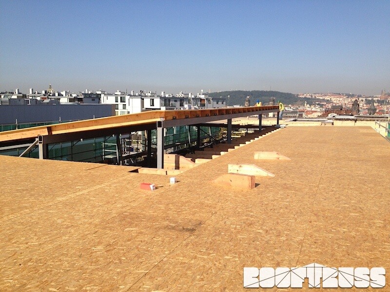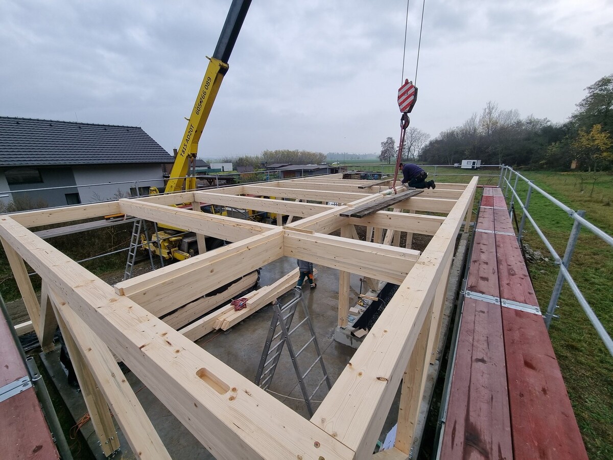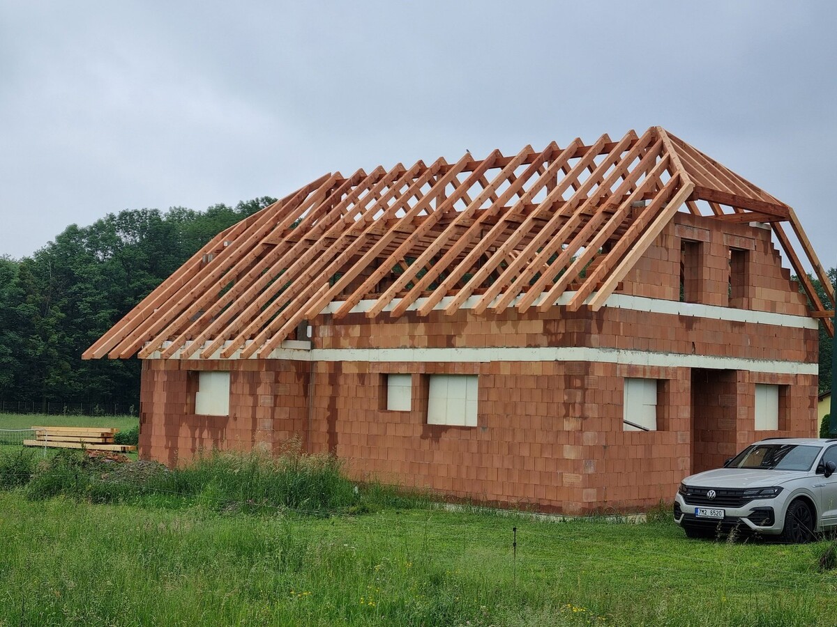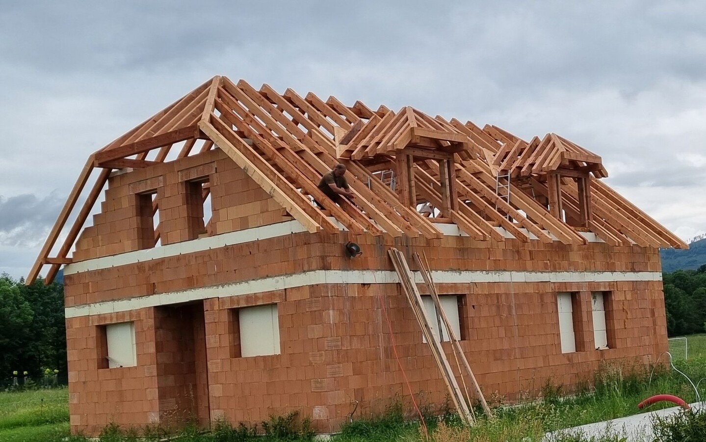 POPIS: Montáž krovu a bednění OSB 2x12 mm P+D