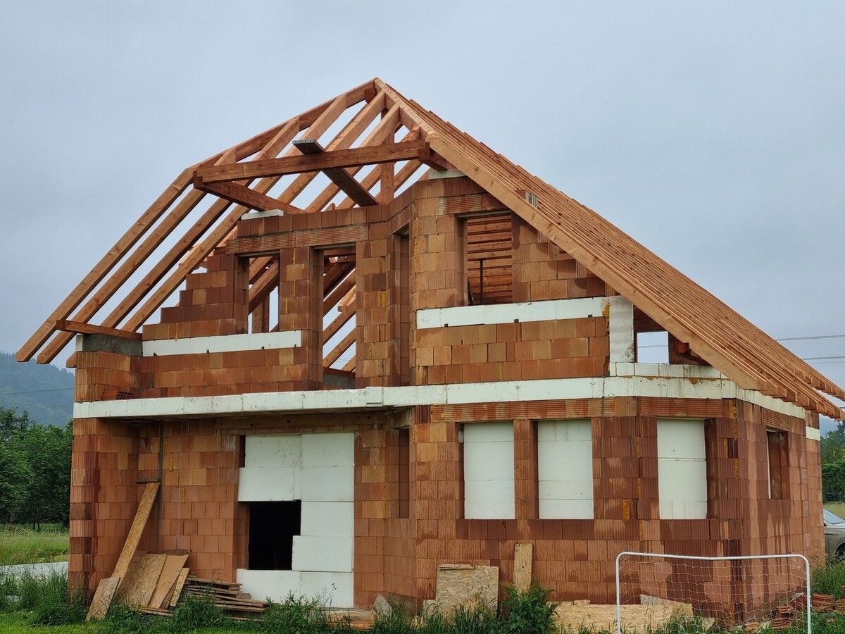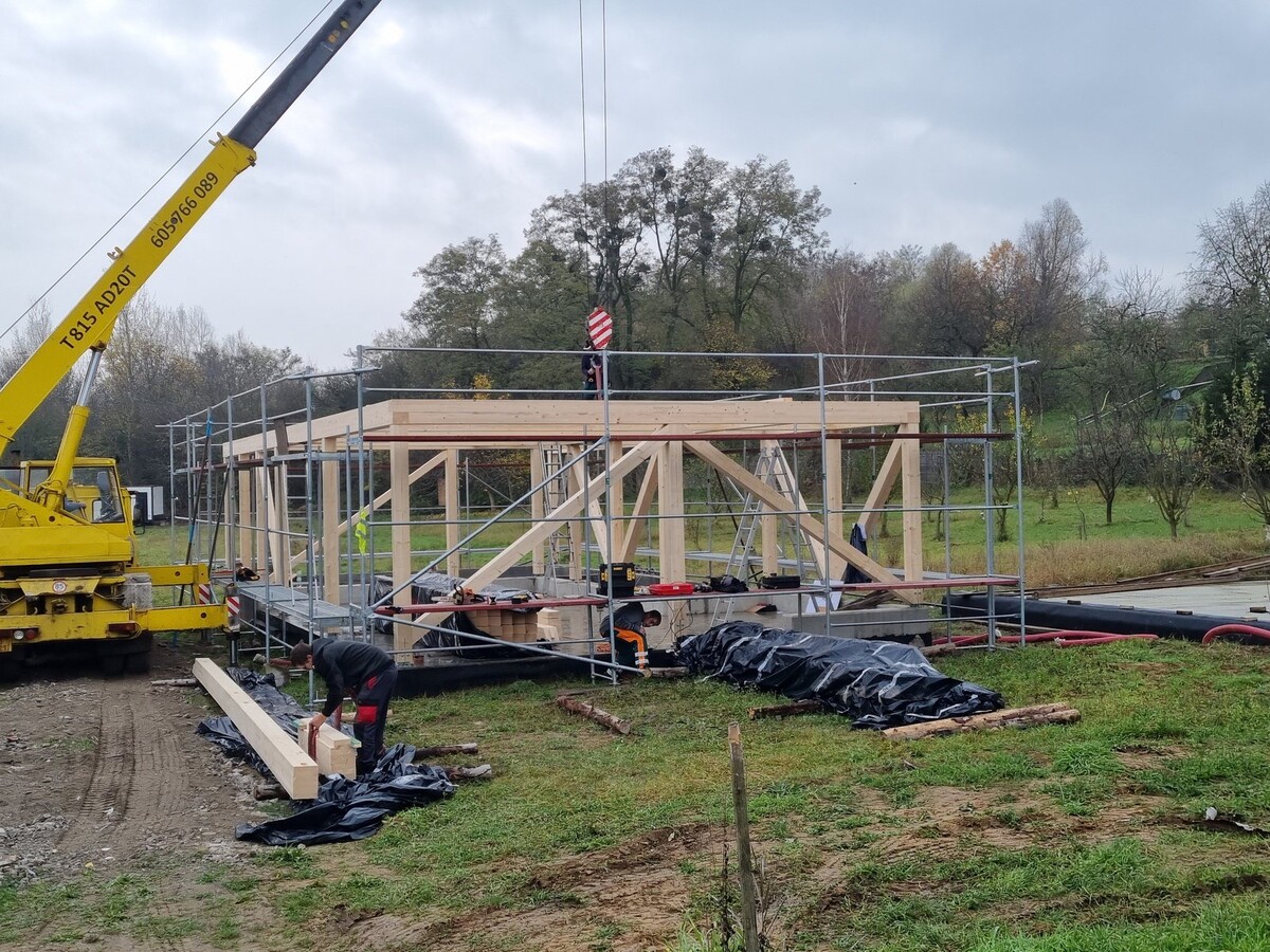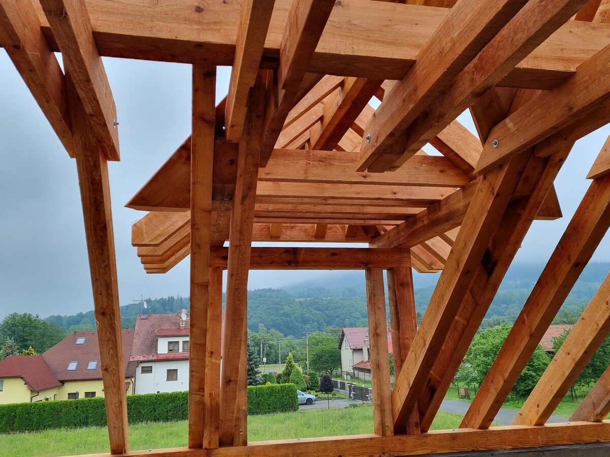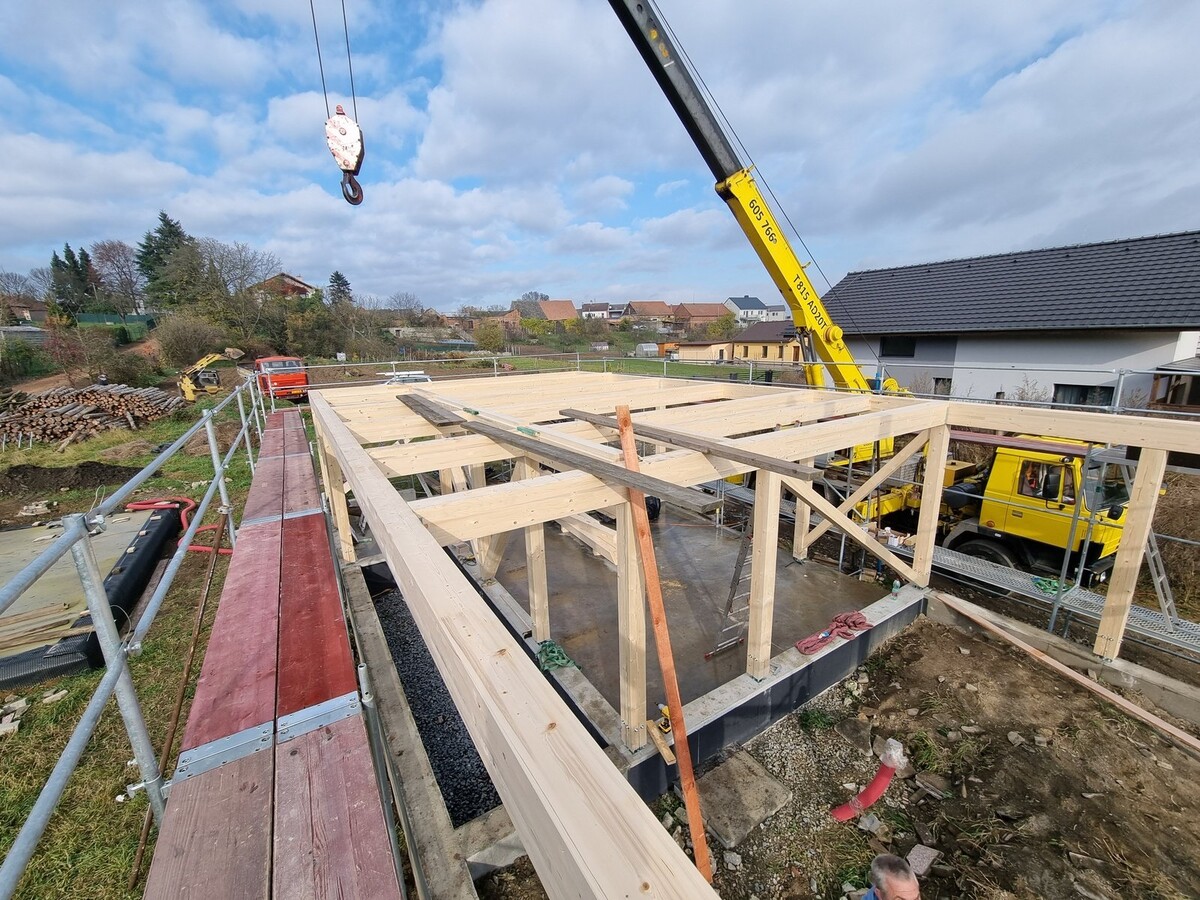 POPIS: Montáž krovu a bednění OSB 2x12 mm P+D