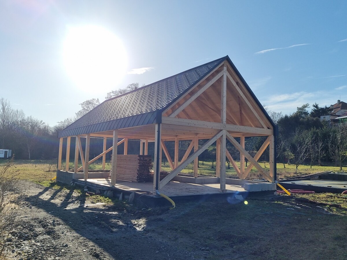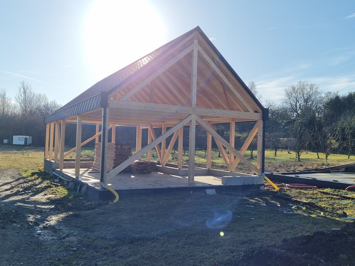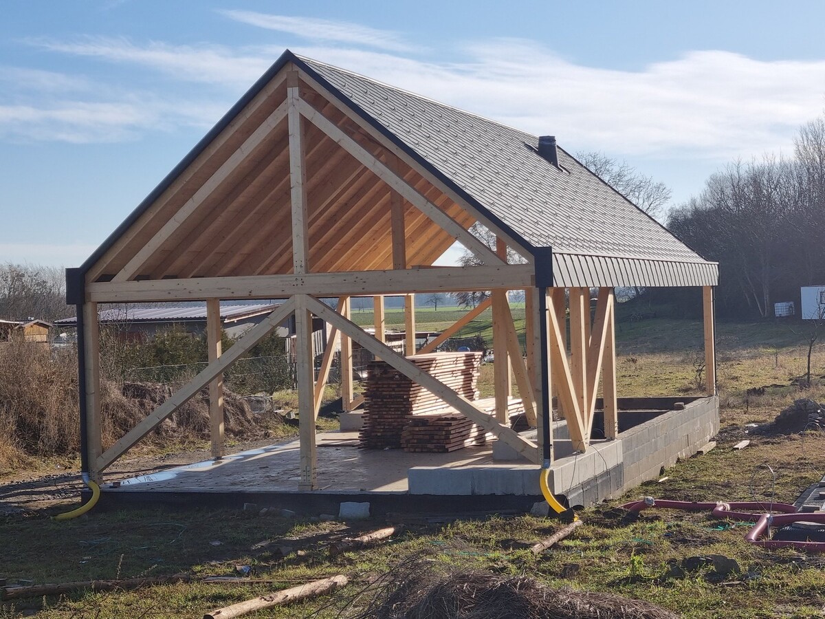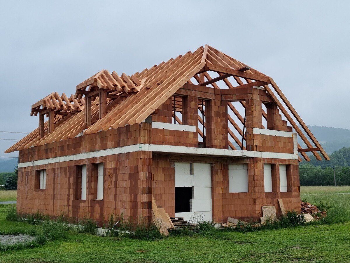POPIS: Montáž krovu a bednění OSB 2x12 mm P+D