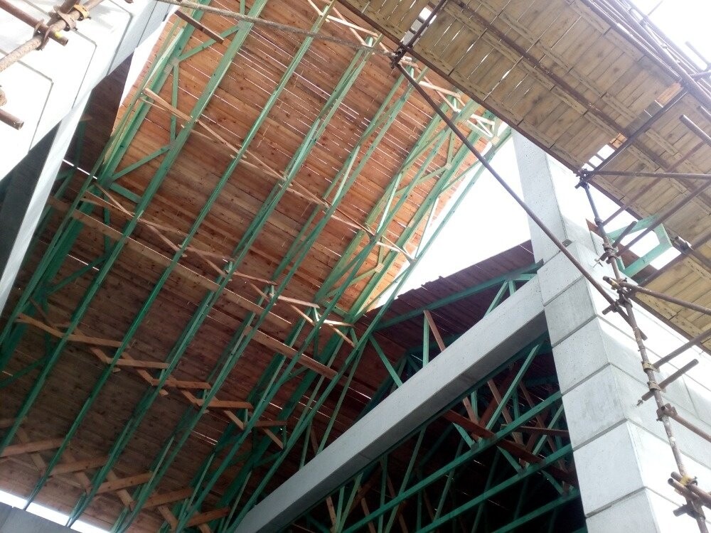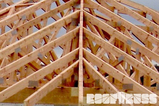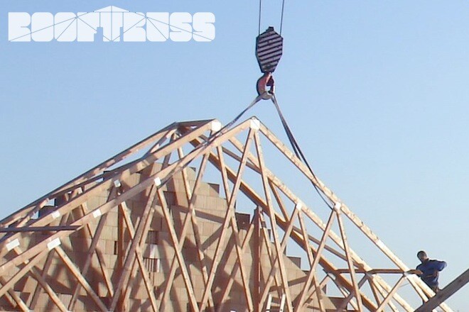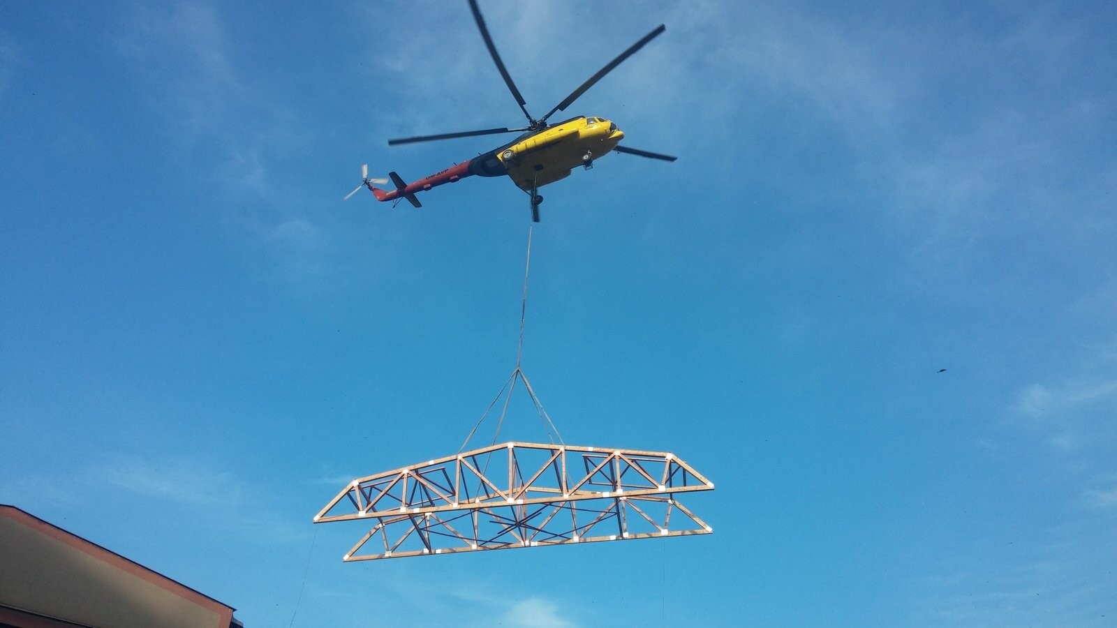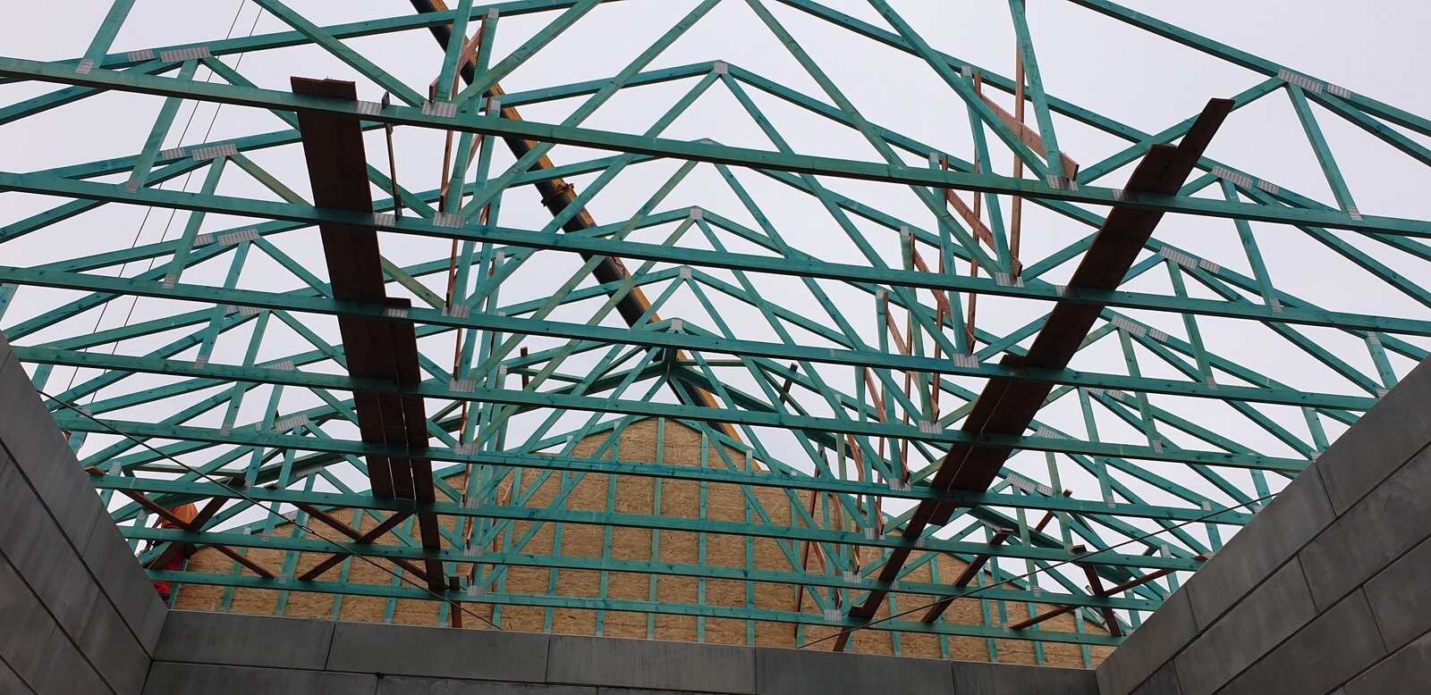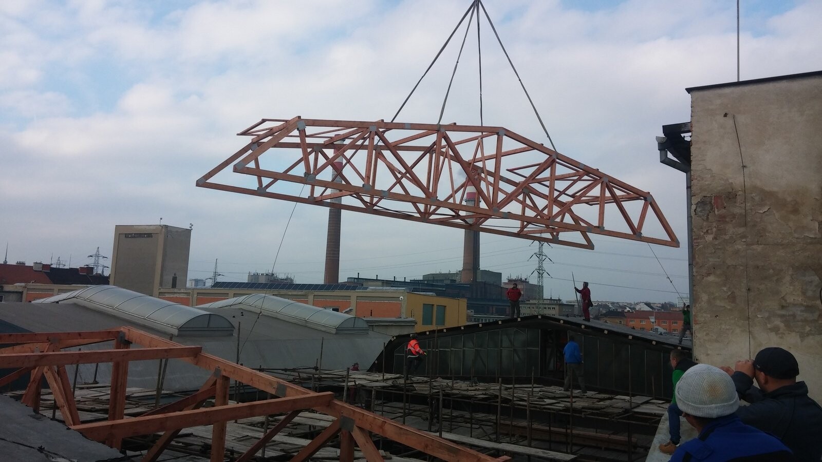 POPIS: Montáž vazníků a dřevěného záklopu