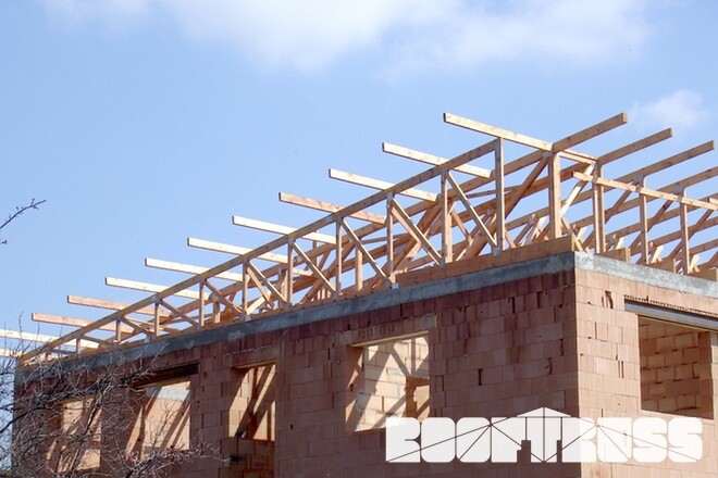 POPIS: Montáž vazníků, bednění OSB 24 mm P+D